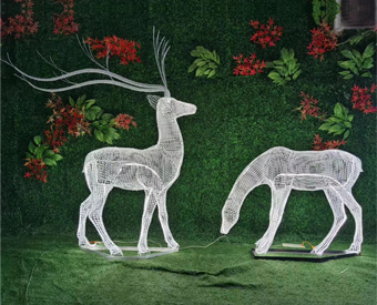 我們制作的這個不銹鋼絲鹿雕塑,內部裝有發光燈管,我們可以根據客戶的需要在內部放置彩色燈管。這樣,晚上彩色燈管接通電源后,雕塑會呈現出不一樣的視覺效果。無論是放置在室內外商場、中央廣場、主題公園還是自家的后花園中,都將是一個極其美觀的裝飾。